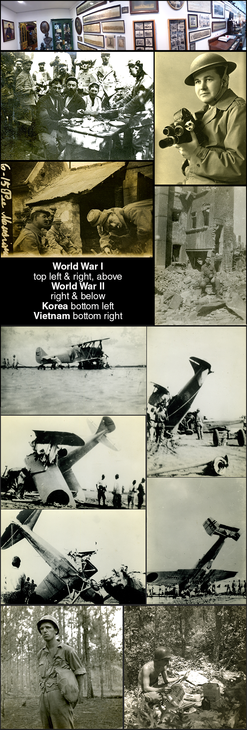 The Unknown Military opened on Veterans Day, Saturday, November 11, with a reception from 4 to 8 p.m. The show honors the veterans of America’s wars. Drawing from the Photography Center's extensive archives of vintage images, curator and Associate Director Adam Putnam has assembled an unprecedented exhibition of photographs and artifacts representing every major US conflict from the Civil War to the Iraq War. Hundreds of images are on view, including Daguerreotype and tintype portraits from the Civil War era, French soldiers in the trenches of World War I, sailors in the World War II Pacific Theater. The images are of unknown persons, made by unknown photographers offering uniquely personal photographic perspectives. To broaden the viewing experience, a variety of vintage artifacts and art are included in this exhibit. From the Photography Center Museum, cameras from each period will be paired with examples of photographs which could have been made by them. The Unknown Military uses images from original unique personal photo albums to document places, people and events, and to honor those who served and sacrificed in combat from the 1860s to the 21st century.